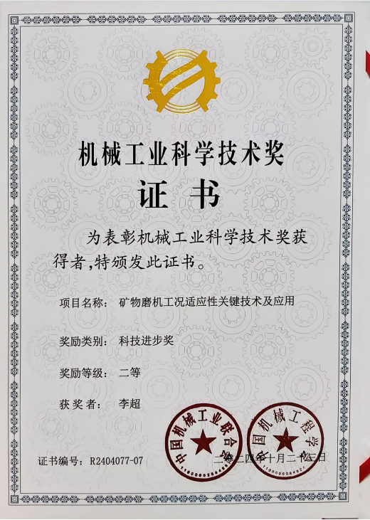 近日,必赢71886网址登录科技成果“矿物磨机工况适应性关键技术及应用”荣获2024年度中国机械工程学会、中国机械工业联合会科学技术进步奖二等奖。该成果项目由必赢71886网址登录与洛阳中信重工机械股份有限公司共同完成。