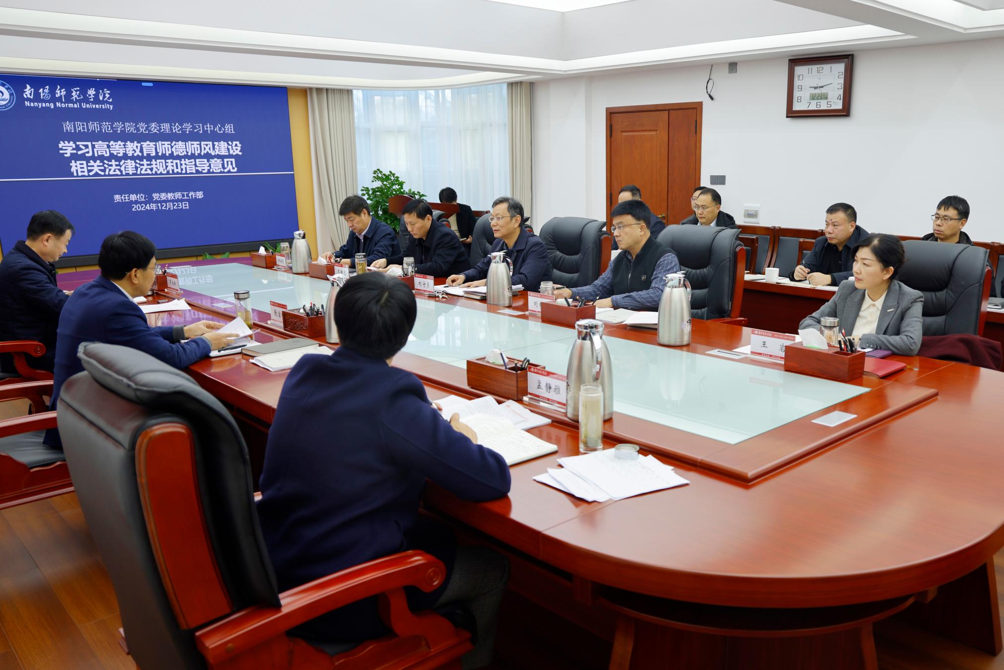 本网讯(李冬哲/文 孟翔/图)12月23日上午,必赢71886网址登录党委理论学习中心组在办公大楼三楼会议室举行集体学习会,深入学习高校师德师风建设相关法律法规和指导意见。校党委书记张宝锋主持学习会并讲话。校党委理论学习中心组全体成员参加。
