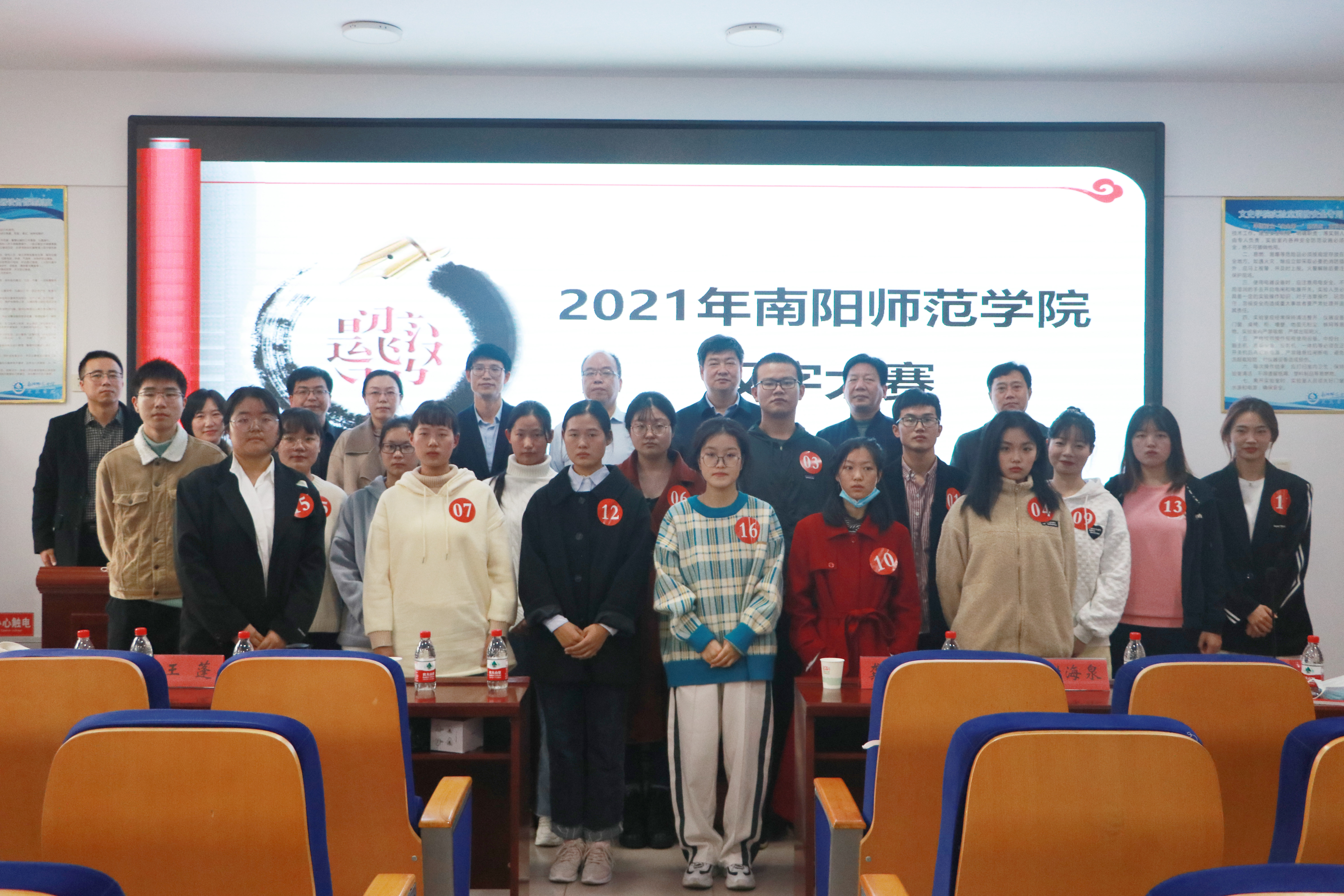 大赛特邀河南省汉字大赛执行主任孙万里莅临指导,孙万里、必赢官网期刊部袁善来老师和教务处李运贤老师担任大赛评委。