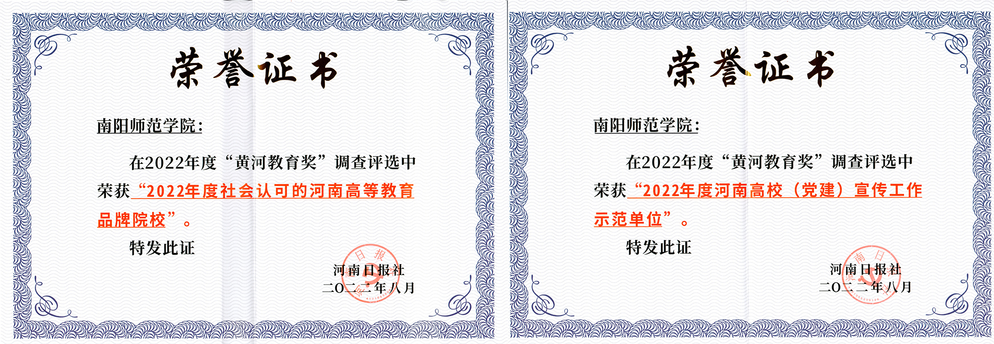 据悉,评选活动自今年3月份启动以来,全省140多所大中专院校和近百个先进人物参评,经过网络投票和专家评审,最终推选出“2022年度社会认可的河南高等教育品牌院校”和“2022年度河南高校(党建)宣传工作示范单位”等奖项。(编审 余正道)