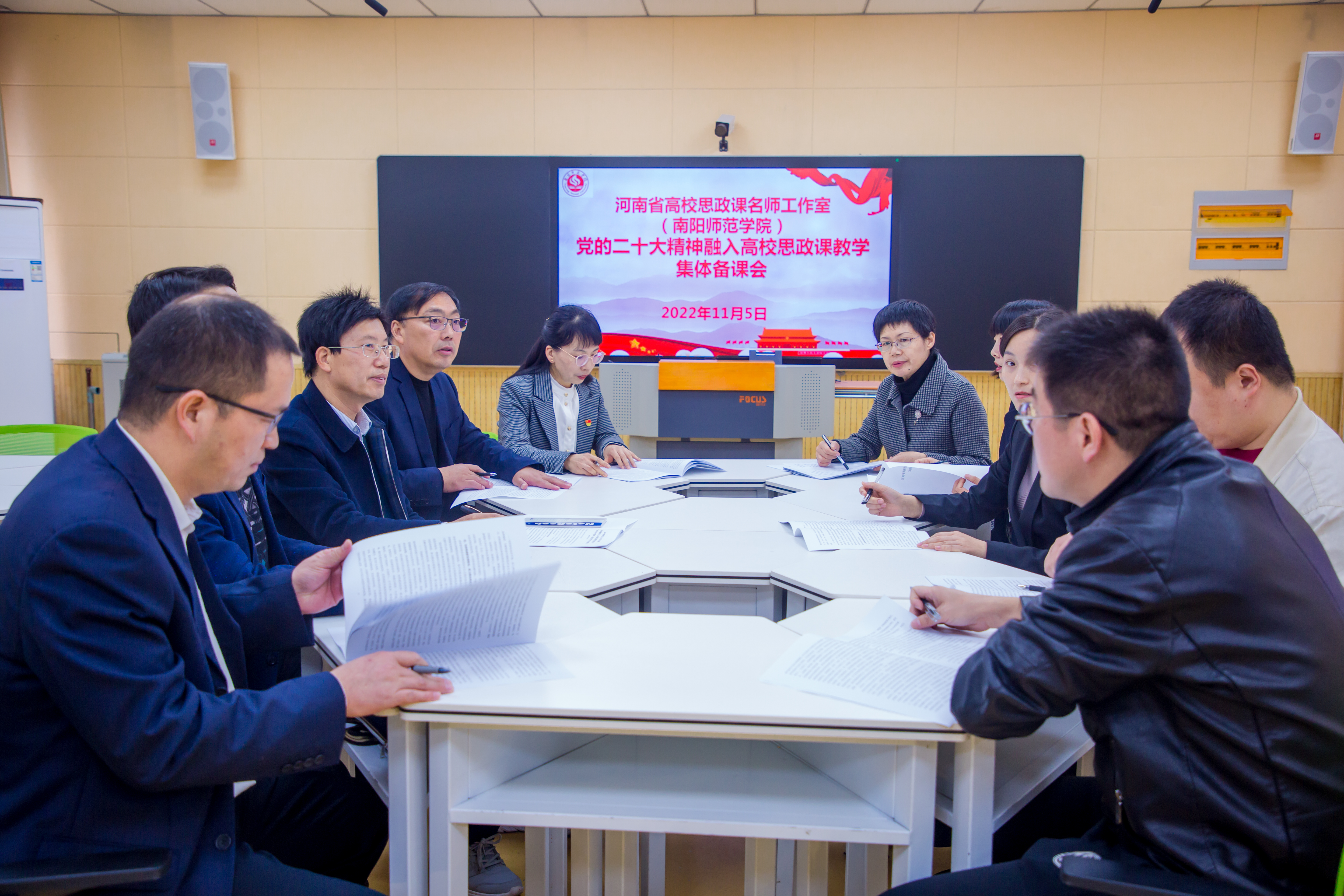 本网讯(陈京/文 杨源/图)11月5日上午,河南省高校思政课教学名师工作室(必赢71886网址登录)在科技大楼智慧教室举行党的二十大精神融入高校思政课集体备课会。