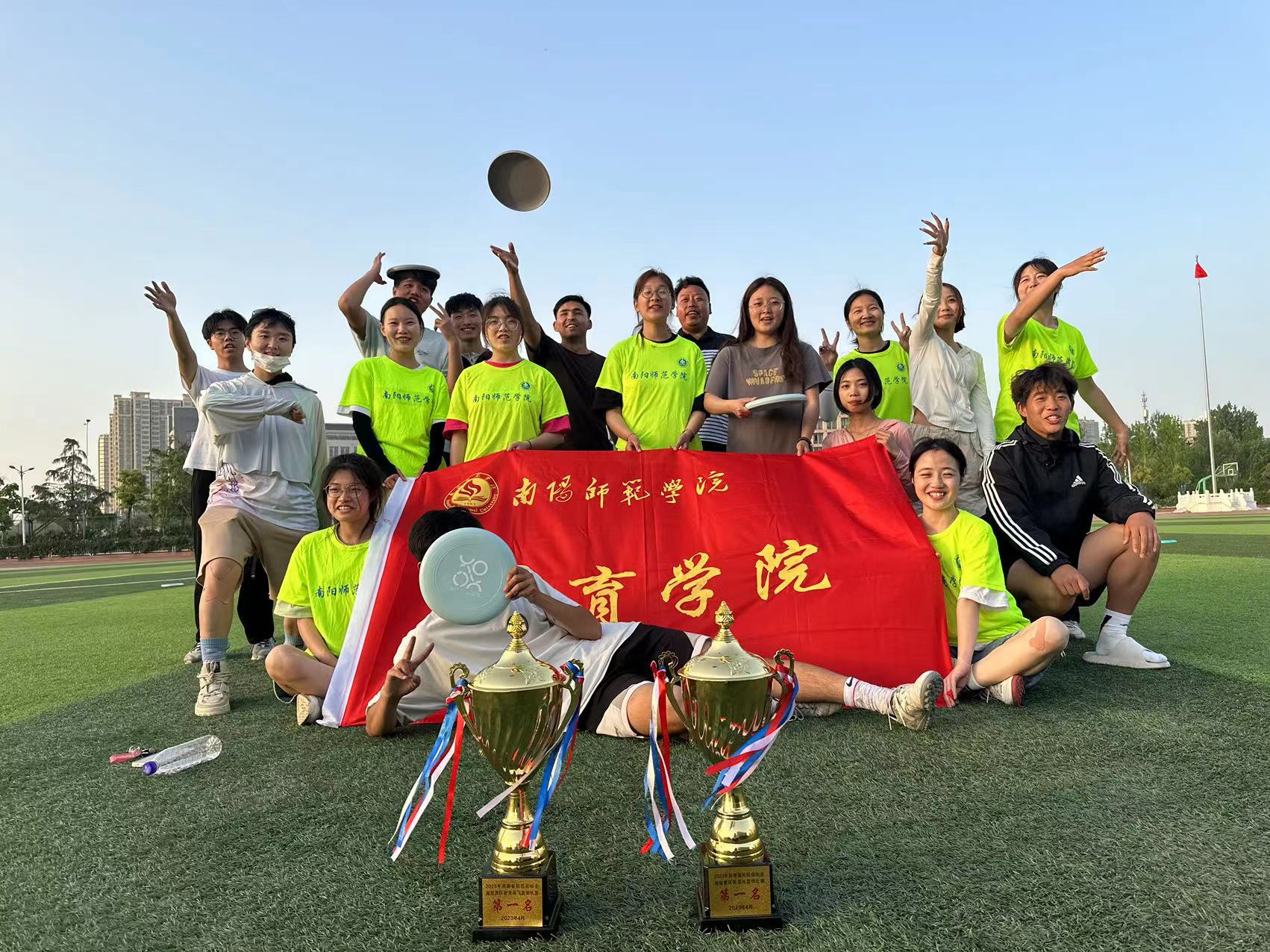 本网讯(通讯员 杨飞)4月16一17日,2023年河南省社区运动会南阳赛区卧龙站在宛西社区举办。必赢71886网址登录学子获得本次比赛飞盘项目第一名的好成绩。
