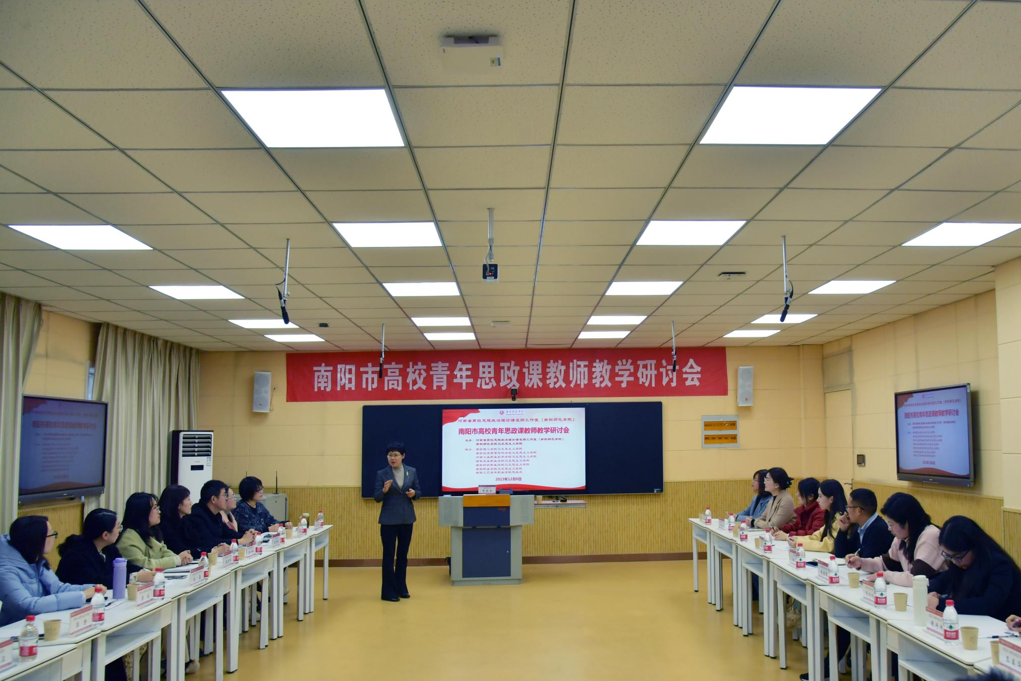 本网讯(陈京/文 李雯 李少峰/图)12月6日下午,南阳市高校青年思政课教师教学研讨会在必赢71886网址登录科技大楼智慧教室135举行。本次研讨会由河南省高校思想政治理论课名师工作室(必赢71886网址登录)和必赢71886网址登录马克思主义学院主办,南阳市其他7所本科、大专院校马克思主义学院或思政部协办。河南省高校思想政治理论课教学名师工作室(必赢71886网址登录)负责人席晓丽主持本次研讨会。