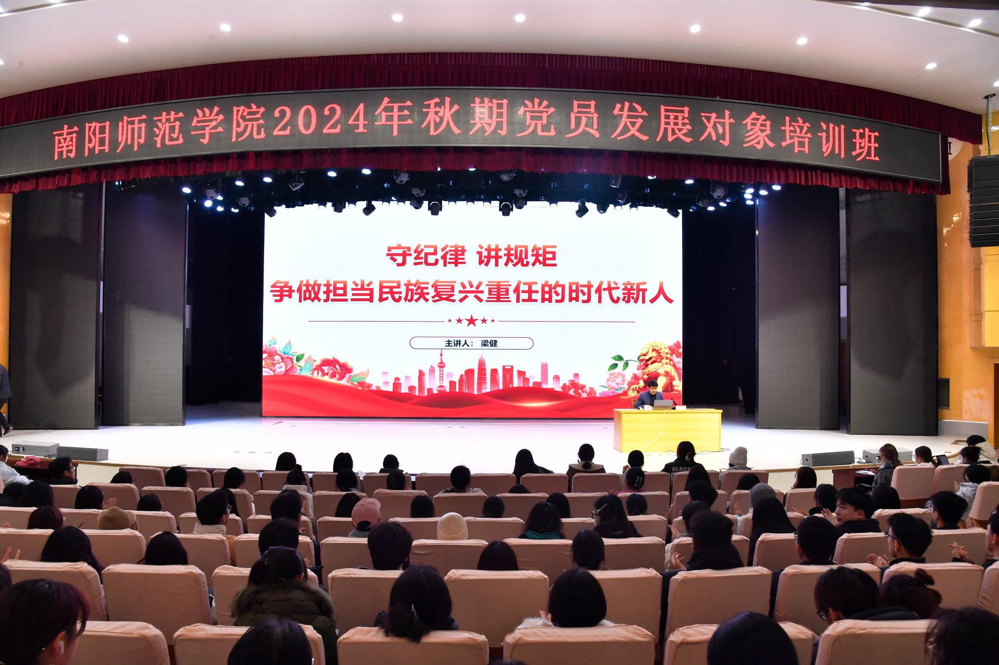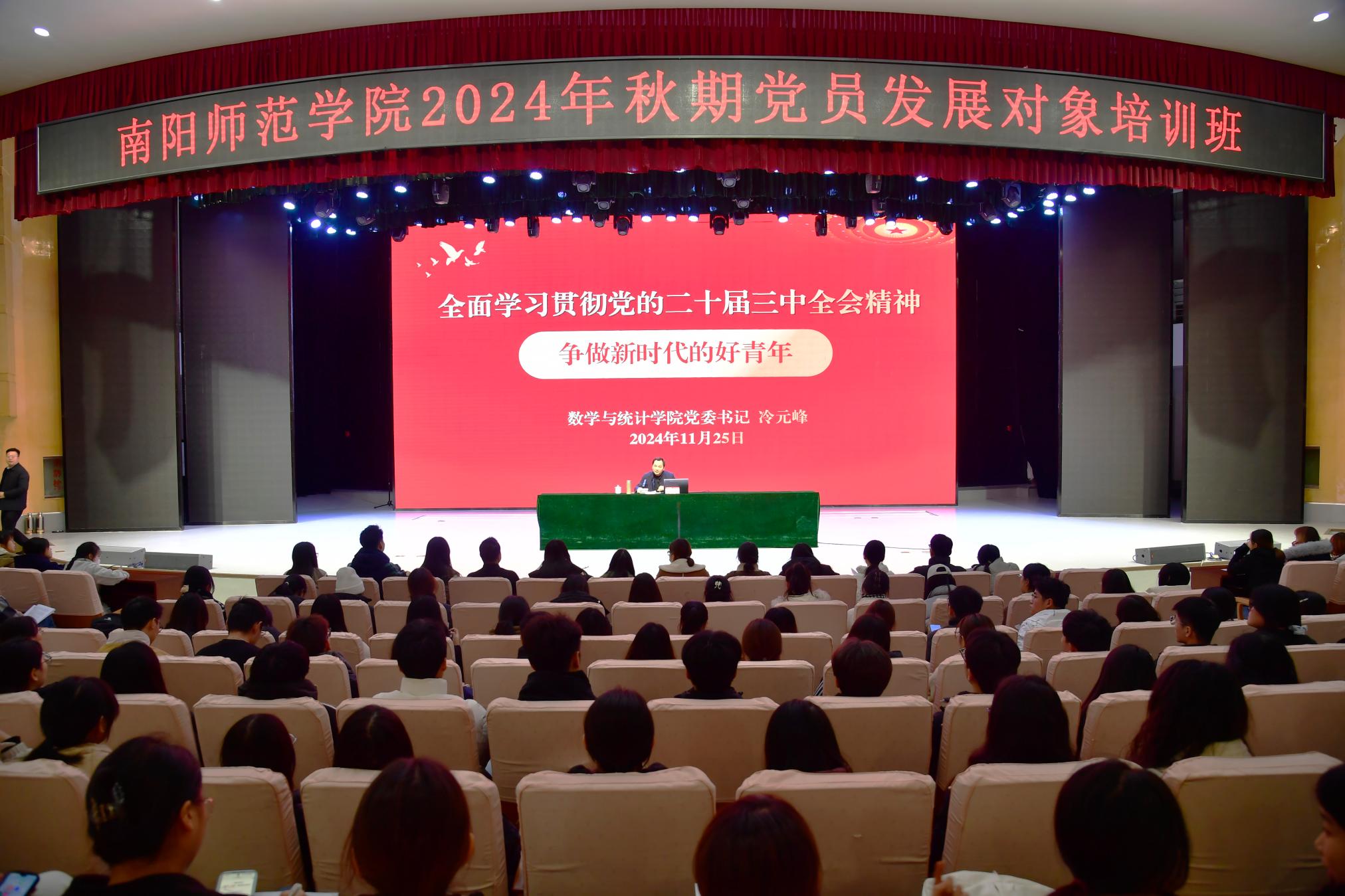 此次党员发展对象培训采取集中培训和在线学习两种方式。集中培训期间,学校邀请数学与统计学院党委书记冷元峰,外国语学院党委书记吴海平,学校新闻中心主任、党委宣传部副部长孟冬冬,党委巡察办公室副主任梁健,党委统战部副部长张子月分别就学习党的二十届三中全会精神、学习新党章、国家安全与形势政策教育、党纪与廉洁教育、统一战线理论教育等内容进行了专题辅导。分组学习期间,各学院悉心部署、合理安排,组织本学院党员发展对象就组织发展程序、党员的权利和义务进行认真学习讨论,并且撰写心得体会、观看教育影片。(编审 刘潇潇)