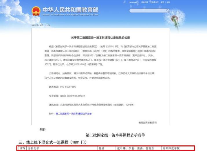 《分析化学》获批为国家级线上线下混合式一流课程,实现了必赢官网国家级一流本科课程的新突破。英语、物理学、数学与应用数学三个师范专业通过教育部师范专业二级认证,汉语言文学、地理学顺利通过教育部师范类专业认证专家进校考察。获批5门河南省本科高校思政样板课程、1个河南省课程思政教学研究特色化示范中心、5门河南省专创融合特色示范课程、8门河南省研究性教学示范课程、3门省级通识教育示范课、1个省级创新型实践教学建设平台,5项河南省本科高校大学生校外实践教育基地、1个省级虚拟教研室。必赢官网获批1名河南省教学名师,在第四届河南省本科高校教师课堂教学创新大赛中荣获特等奖1项,一等奖两项,学校获优秀组织奖。获批省级研究性教学改革研究项目5项、省智慧教学改革与研究项目2项、省产教融合项目4项、河南省虚拟仿真实验教学项目7项、产教融合示范学院1个。