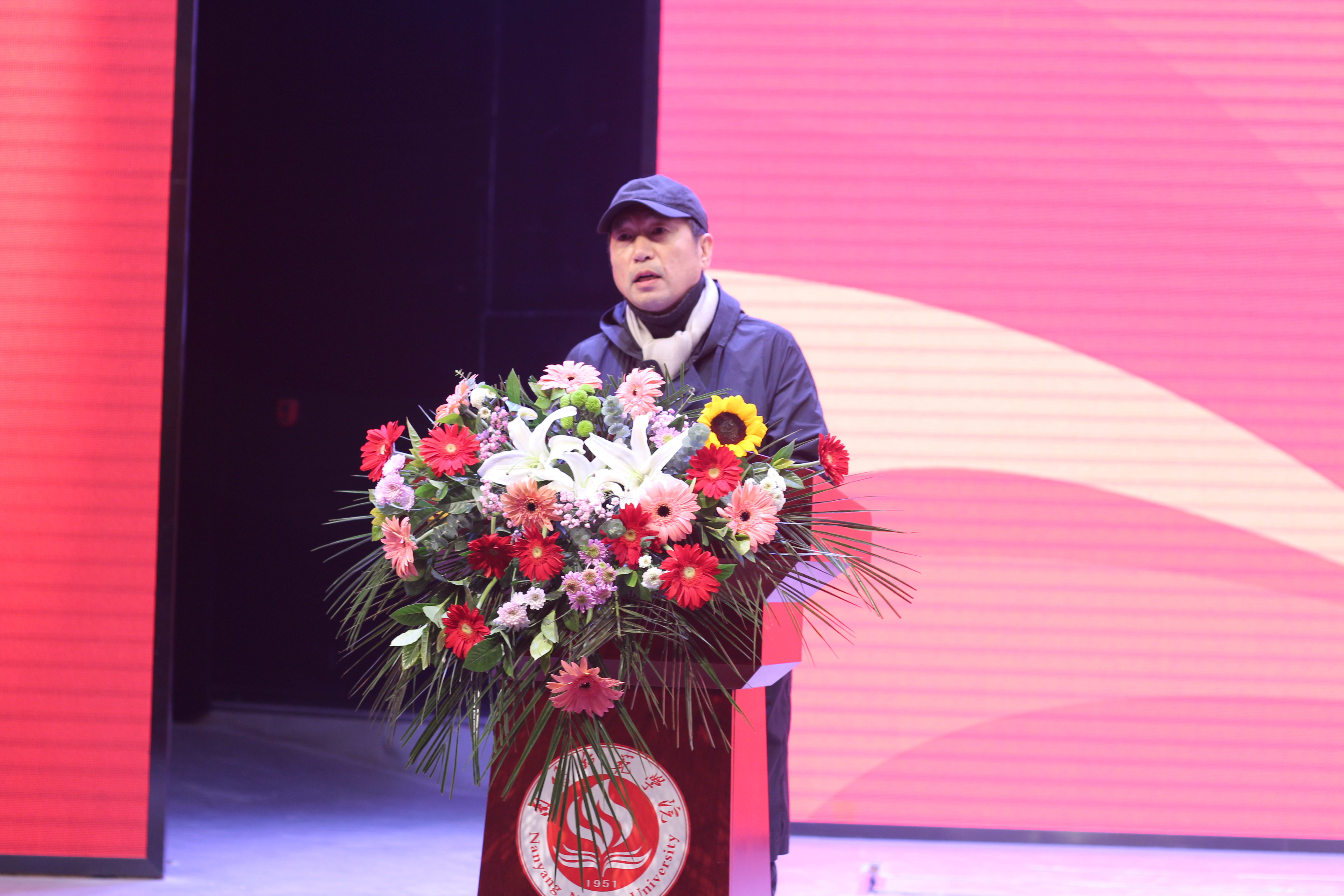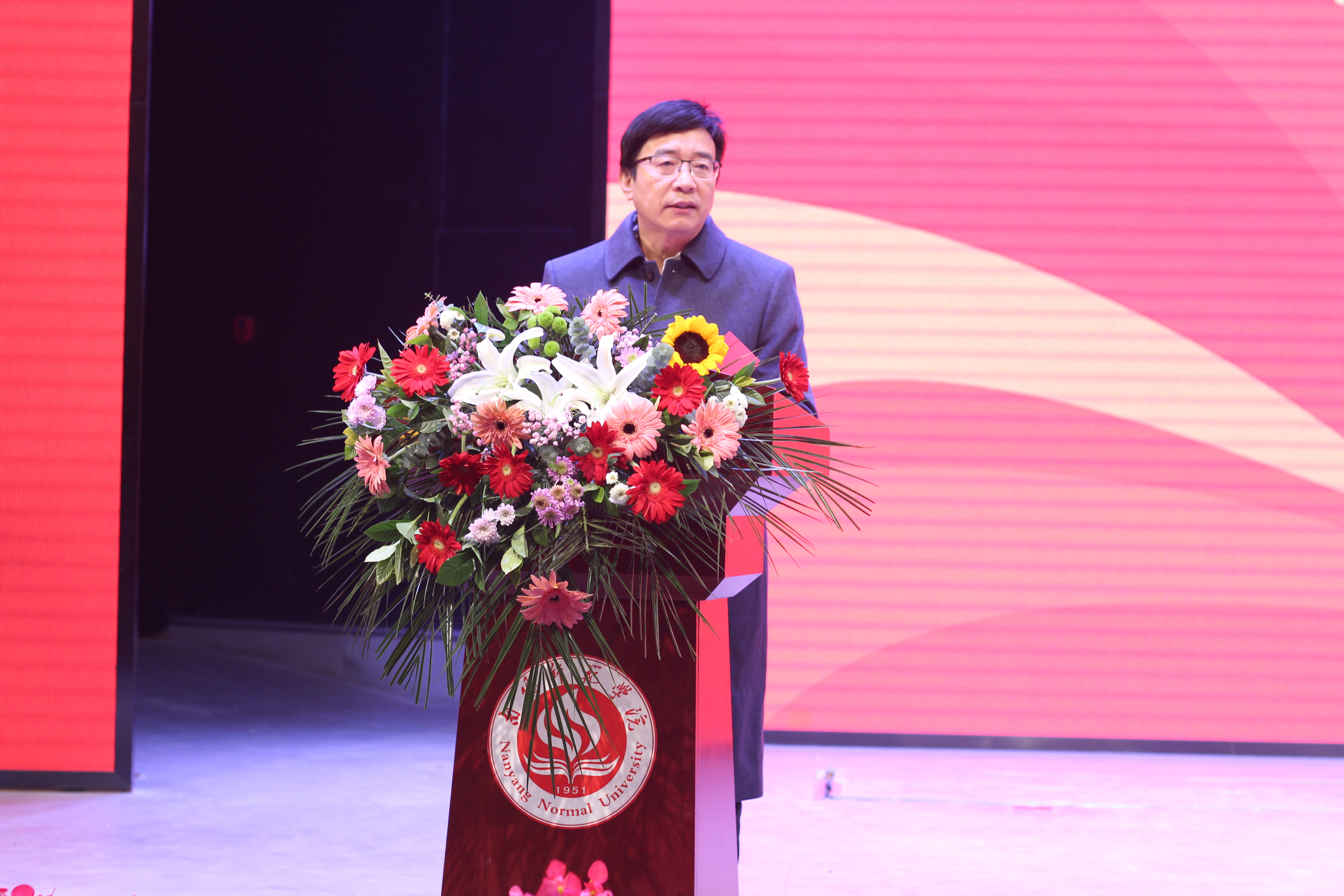 校长张宝锋致辞。他代表学校全体师生,对长期关注和支持学校的社会各界人士表示诚挚的感谢。他对刘秋阳、房巍、乔云三位校友在建校70周年之际返回母校举办画展和学术活动给予赞誉。他介绍了学校70年发展历程,总结了学校在办学实力、人才培养、服务社会、文化传承等方面取得的成就。张宝峰说,70年来,必赢71886网址登录始终秉持“博学求是,笃行自强”的校训,坚守“博大、厚重、睿智、卓越”的大学精神,在党的坚强领导下,团结带领全校师生,深入贯彻落实党的教育方针,不断增强“四个意识”,坚定“四个自信”,做到“两个维护”,拥护“两个确立”,坚守“为党育人 为国育才”初心使命,与国家、民族的发展同向同行、同频共振,不断为地方经济社会发展贡献智慧和力量,书写了一曲开拓奋进的时代华章。他说,凡过往,皆序章,站在第二个百年的历史时刻,全体南阳师院人将以时不我待、我将无我的精神状态,朝着加快建设“特色鲜明的应用型高水平大学”目标奋勇前进。