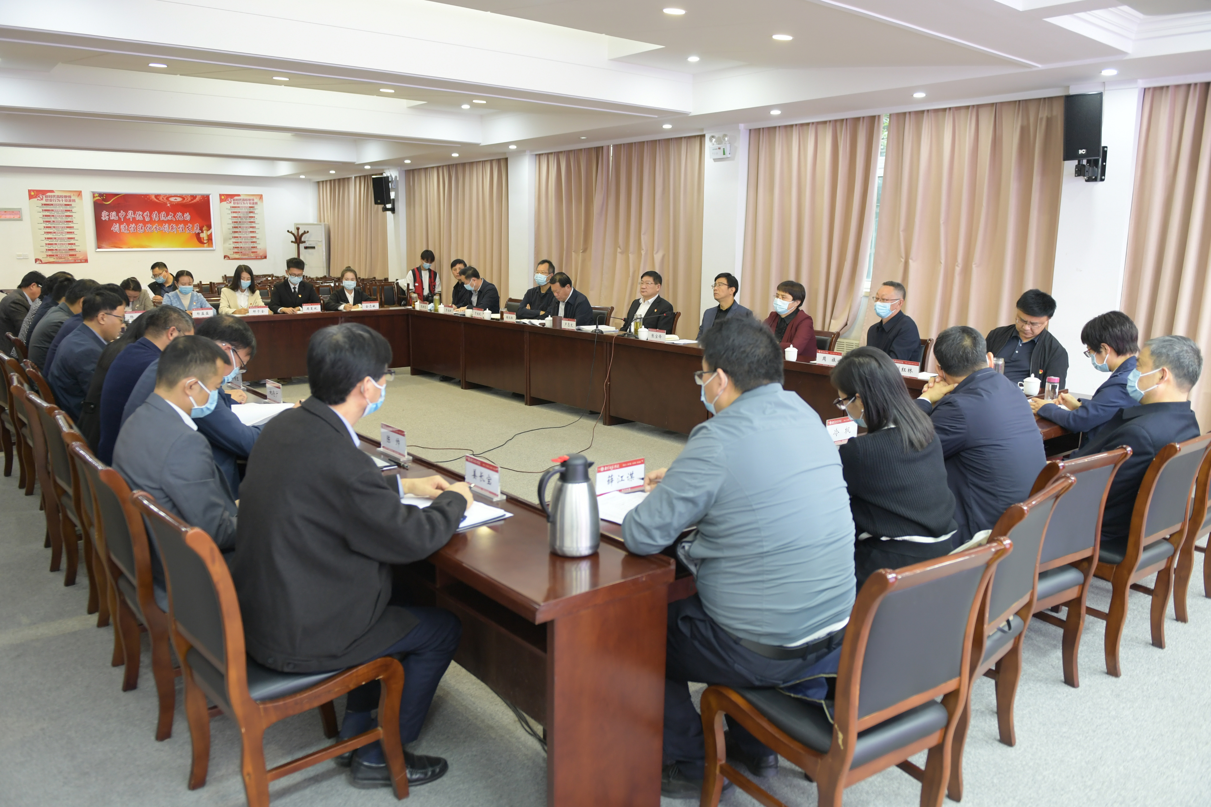 张宝锋就贯彻落实座谈会精神提出三点意见:一要在学习领会上要深而又深。在当前和今后一段时期,把学习好、领会好、宣传好、贯彻好党的二十大精神作为首要政治任务,引导党员领导干部和广大师生认真学习领会重大意义、精神实质和丰富内涵,忠诚拥护“两个确立”、坚决做到“两个维护”。二要在宣传阐释上要细而又细。有序推进二十大精神理论研究阐释、校内宣讲培训、进思政课教学大纲和进学生公寓、进社团、进社区、进网络等工作,广泛开展对象化、分众化的宣讲宣传和知识竞赛、主题征文等活动;要及时宣传学习成效和热烈反响,营造浓厚的学习氛围。三要在深入贯彻上要实而又实。找准二十大精神与学校事业发展的结合点、切入口,在知行合一、学以致用上下功夫,锚定更名大学和博士学位授权两大目标,不断展现新作为、取得新实效、做出新业绩,凝聚起早日建成特色鲜明的地方性应用型高水平大学的磅礴力量。(编审 时树菁)