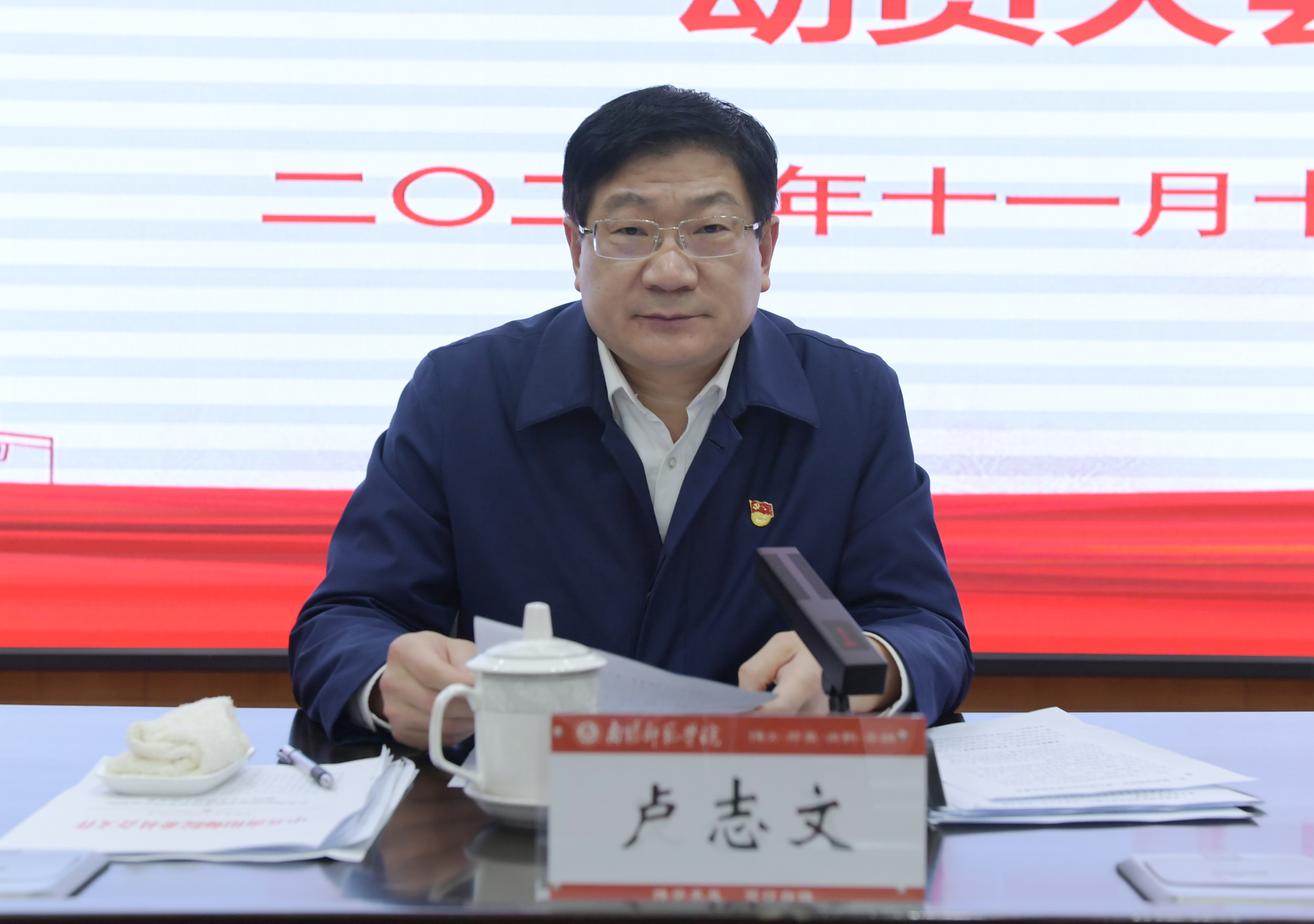 校党委书记卢志文就抓好学习宣传贯彻工作作了动员部署。他指出,一是要深刻认识党的二十大的重大意义。党的二十大在党和国家历史上具有重要的里程碑意义。习近平总书记的报告为新时代新征程党和国家事业发展,实现第二个百年奋斗目标指明了前进方向,确立了行动指南。二是要深刻领悟学习贯彻党的二十大精神重要要求。深刻认识“五个牢牢把握”;深刻理解“七个讲清楚”;重点学习“九个深刻领会”。三是要全面系统准确把握党的二十大精神核心要义。深刻领会党的二十大主题;深刻领会过去5年和新时代十年伟大变革;深刻领会开辟马克思主义中国化时代化新境界;深刻领会新时代新征程中国共产党的使命任务;深刻领会中国式现代化的中国特色和本质要求;深刻领会社会主义经济建设、政治建设、文化建设、社会建设、生态文明建设等方面的重大部署;深刻领会教育科技人才、法治建设、国家安全等方面的重大部署;深刻领会国防和军队建设、港澳台工作、外交工作等方面的重大部署;深刻领会坚持党的全面领导和全面从严治党的重大部署。全校师生要迅速把思想和行动统一到党的二十大精神上来,深刻领悟“两个确立”的决定性意义,进一步增强“四个意识”、坚定“四个自信”、做到“两个维护”,不断增强政治判断力、政治领悟力、政治执行力,在全面实现中华民族伟大复兴新征程上奋勇争先、更加出彩。四是要坚持学用结合,奋力推动学校事业高质量发展。增强政治担当,坚定不移为党育人、为国育才,落实立德树人根本任务,培养德智体美劳全面发展的社会主义建设者和接班人;提高人才培养质量,着力造就拔尖创新人才;坚持人才是第一资源,深入实施人才兴校战略;坚持创新是第一动力,深入实施创新驱动战略;心怀“国之大者”,积极服务国家战略和经济社会发展;厚植家国情怀,增强师生文化自信自强;坚持党的领导,以党的建设高质量引领学校事业发展高质量。五是要扛稳政治责任,迅速掀起学习宣传贯彻热潮。要开展集中宣讲,抓好学习培训;要加大宣传力度,营造浓厚氛围;要加强研究阐释,交流研究成果;要融入课堂教学,推动走深走实。