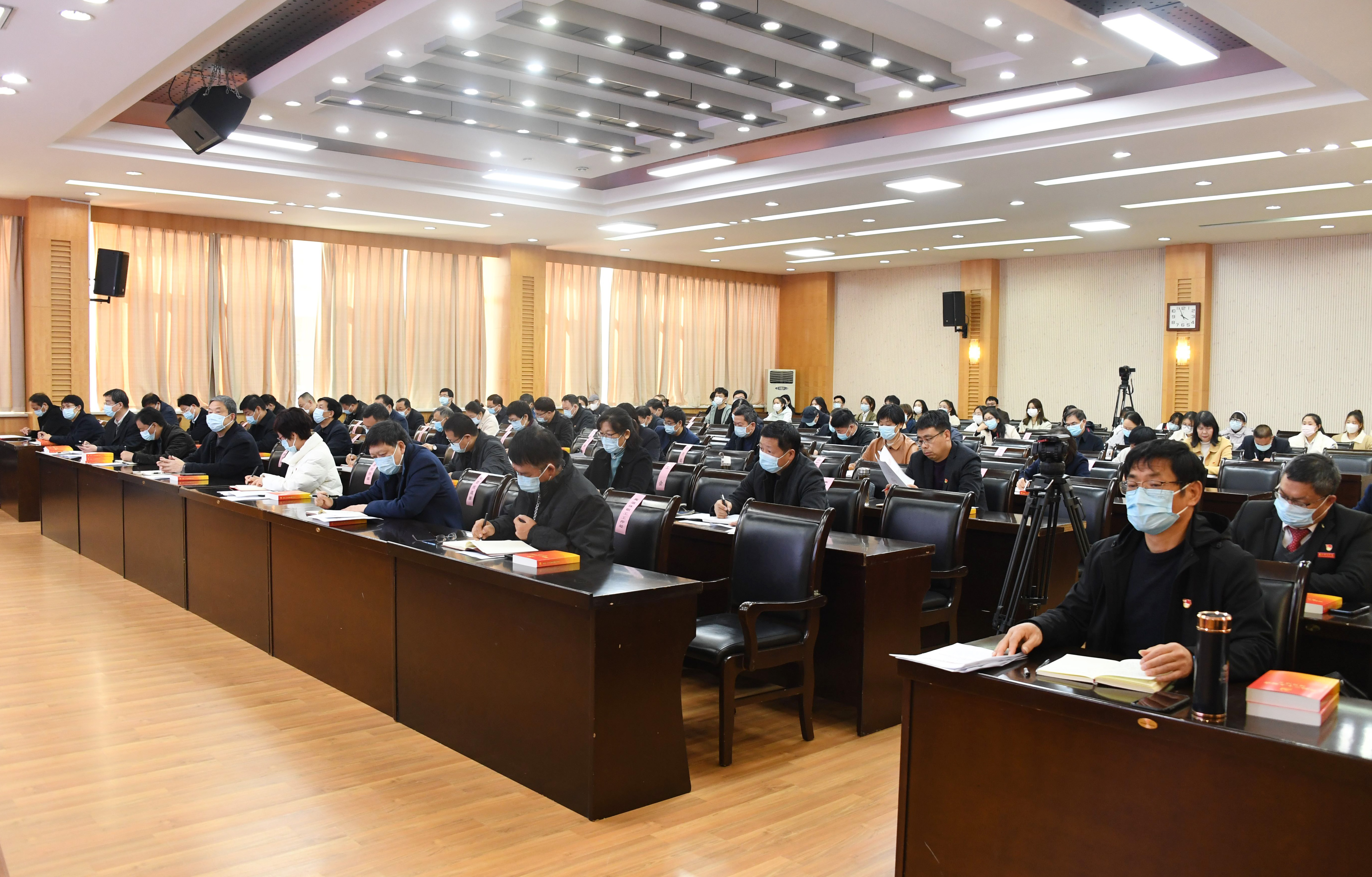 本网讯(侯正刚/文 杨毅鑫 秦韵/图)11月17日下午,必赢71886网址登录在科技大楼三楼会议室召开学习宣传贯彻党的二十大精神动员会。全体校领导出席,各职能部门主要负责人和各学院(部)书记、院长(主任)以及学生代表参加。校长张宝锋主持会议。