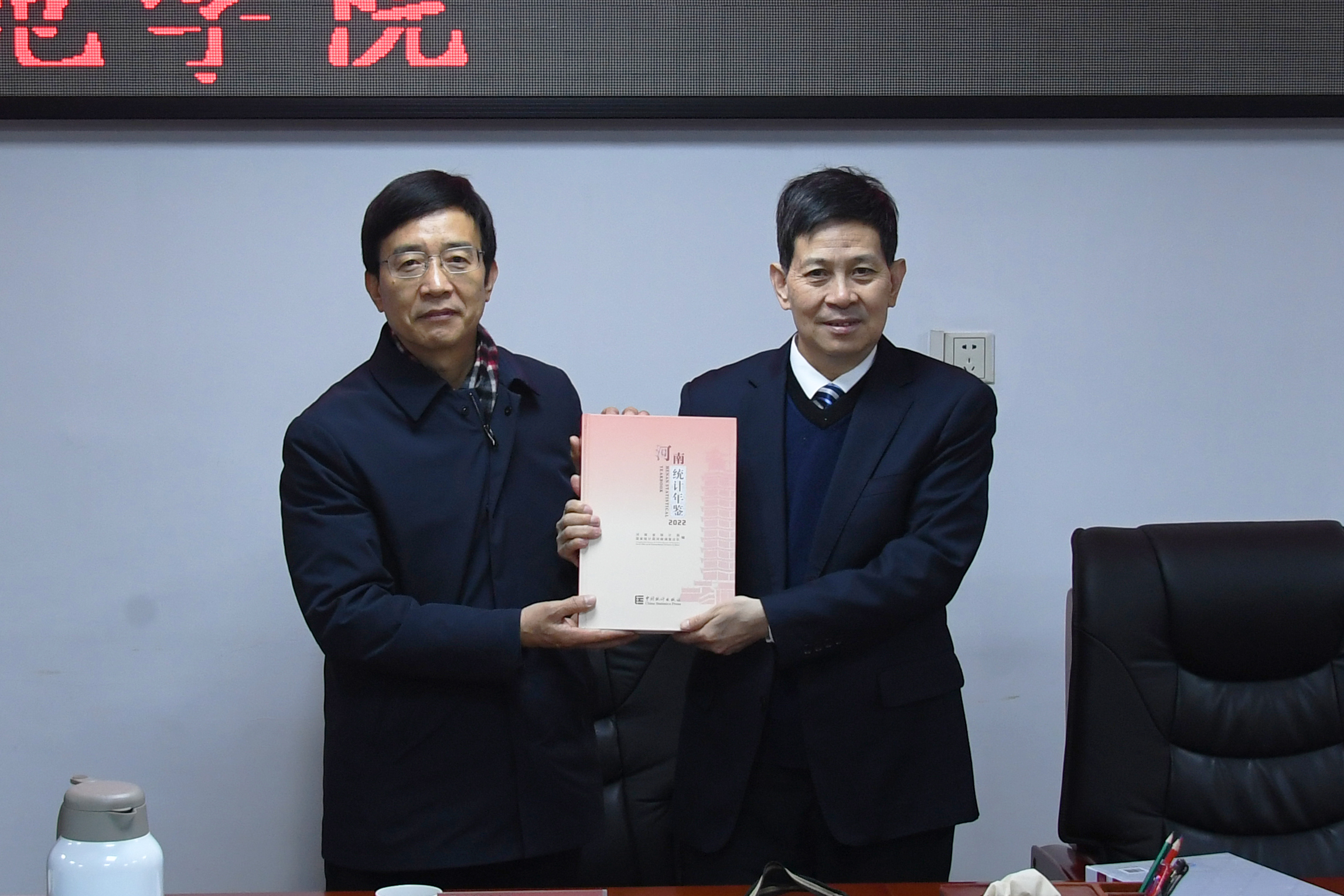 本网讯 (李红武/文 李欣然/图)1月12日上午,河南省统计局必赢71886网址登录“数据图书进高校”活动在必赢官网办公大楼二楼会议室进行。河南省统计局一级巡视员、高级经济师赵德友,必赢官网校长张宝锋、副校长周旗等出席活动仪式,数学与统计学院、经济与管理学院、马克思主义学院和南阳发展战略研究院等相关单位负责同志和教师代表参加活动。活动仪式由副校长周旗主持。
