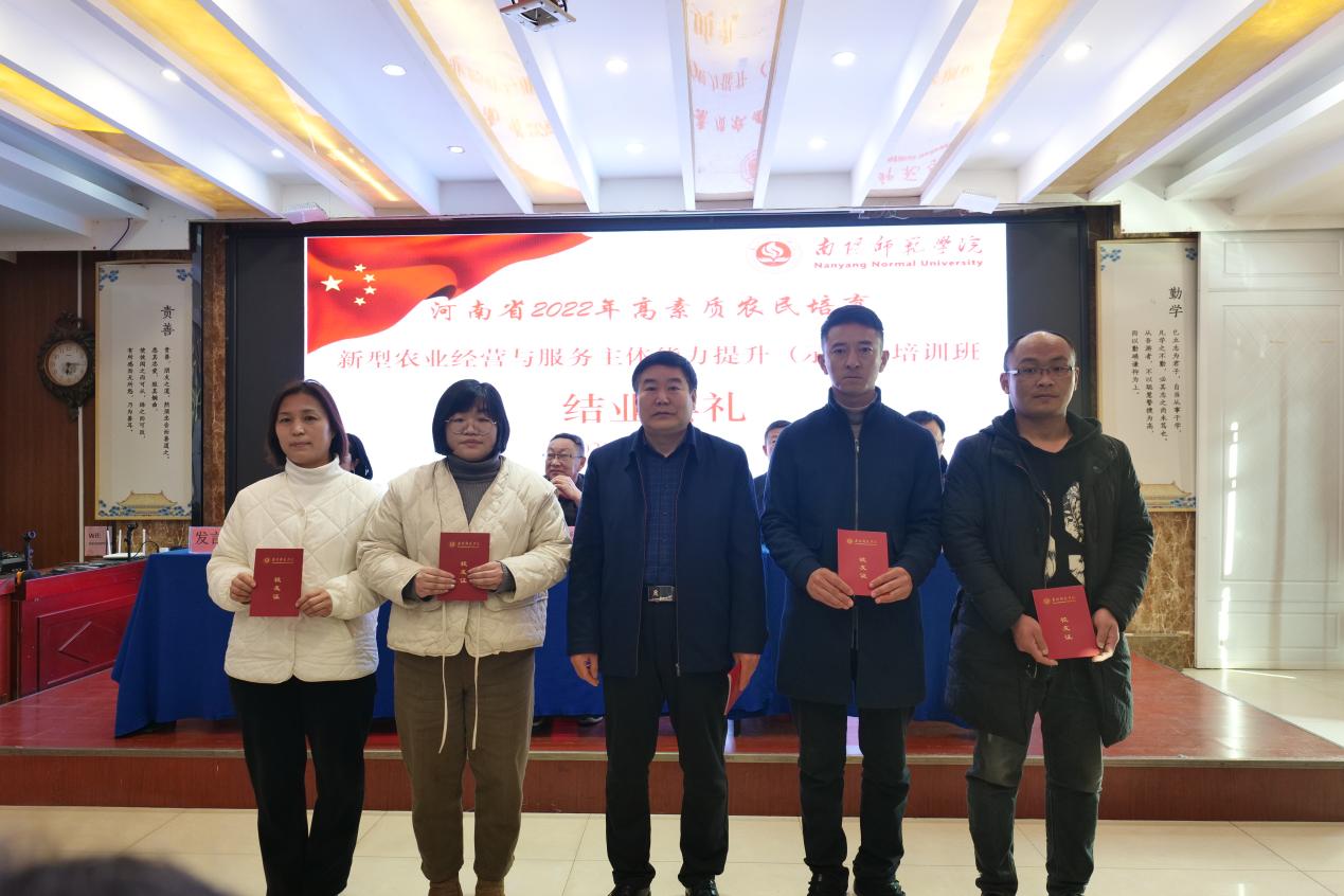 本网讯(通讯员 王坦 左卫芳 图/文)2月20日上午,由生命科学与农业工程学院承办的2022年河南省新型农业经营与服务主体能力提升(示范)第二期培育班结业典礼在南岸明珠酒店会议厅举行。必赢官网副校长周旗,南阳市农业农村局副局长张修峰,生命科学与农业工程学院、校友办负责同志及全体学员参加。