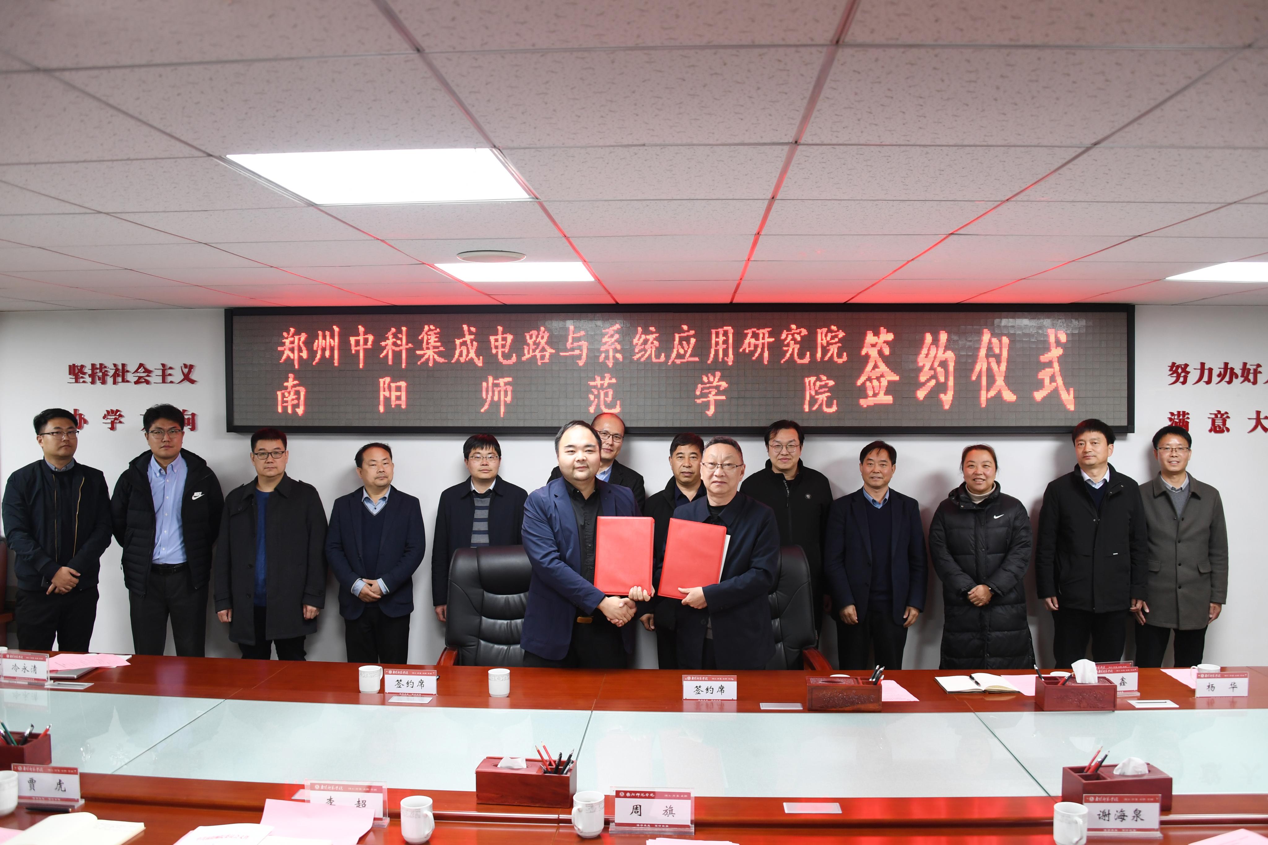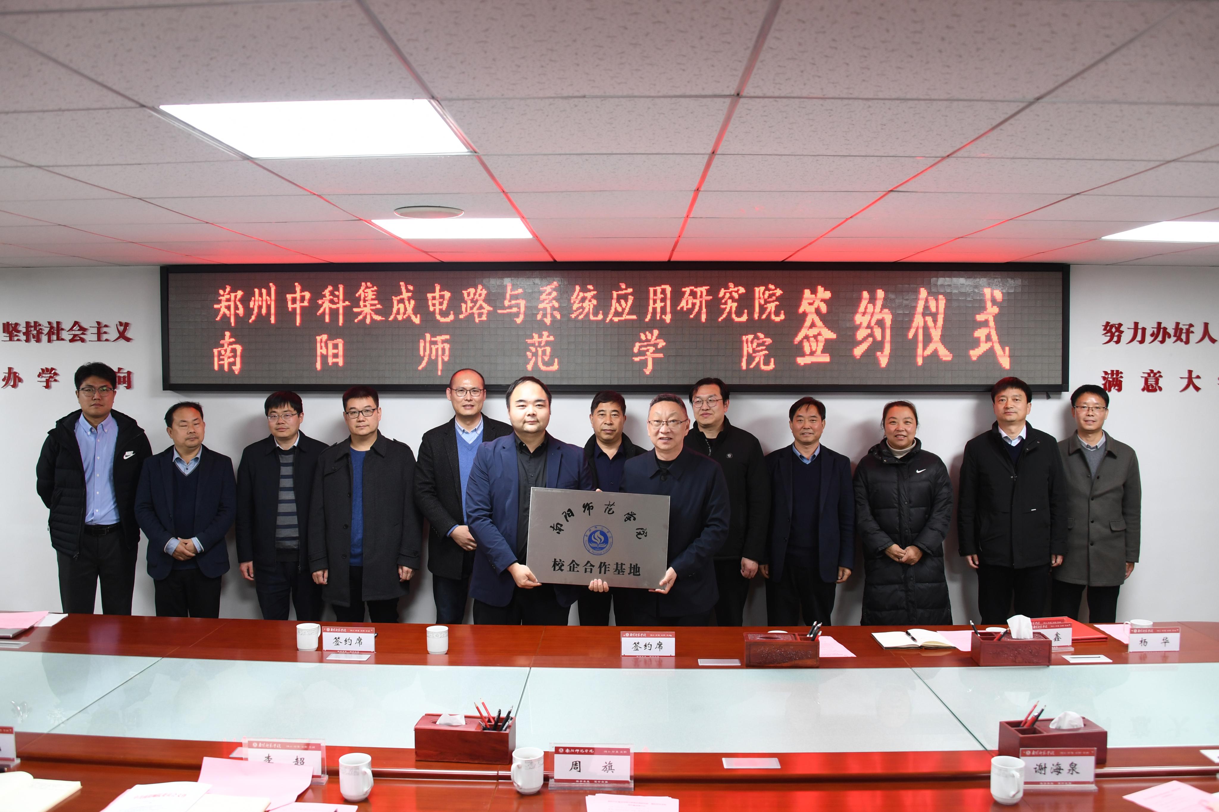 本网讯(赵清韬 惠明/文 杨毅鑫 姜智源/图)3月16日下午,必赢官网与郑州中科集成电路与系统应用研究院(简称研究院)校企合作签约暨授牌仪式在办公大楼三楼会议室举行。研究院院长邱昕一行及南阳市科技局相关科室负责人,必赢官网副校长周旗出席签约仪式。教务处、科技处、创新创业学院、机电工程学院、计算机科学与技术学院、纳米器件与系统集成研究院等相关负责同志参加。仪式由校企合作办公室主任李超主持。