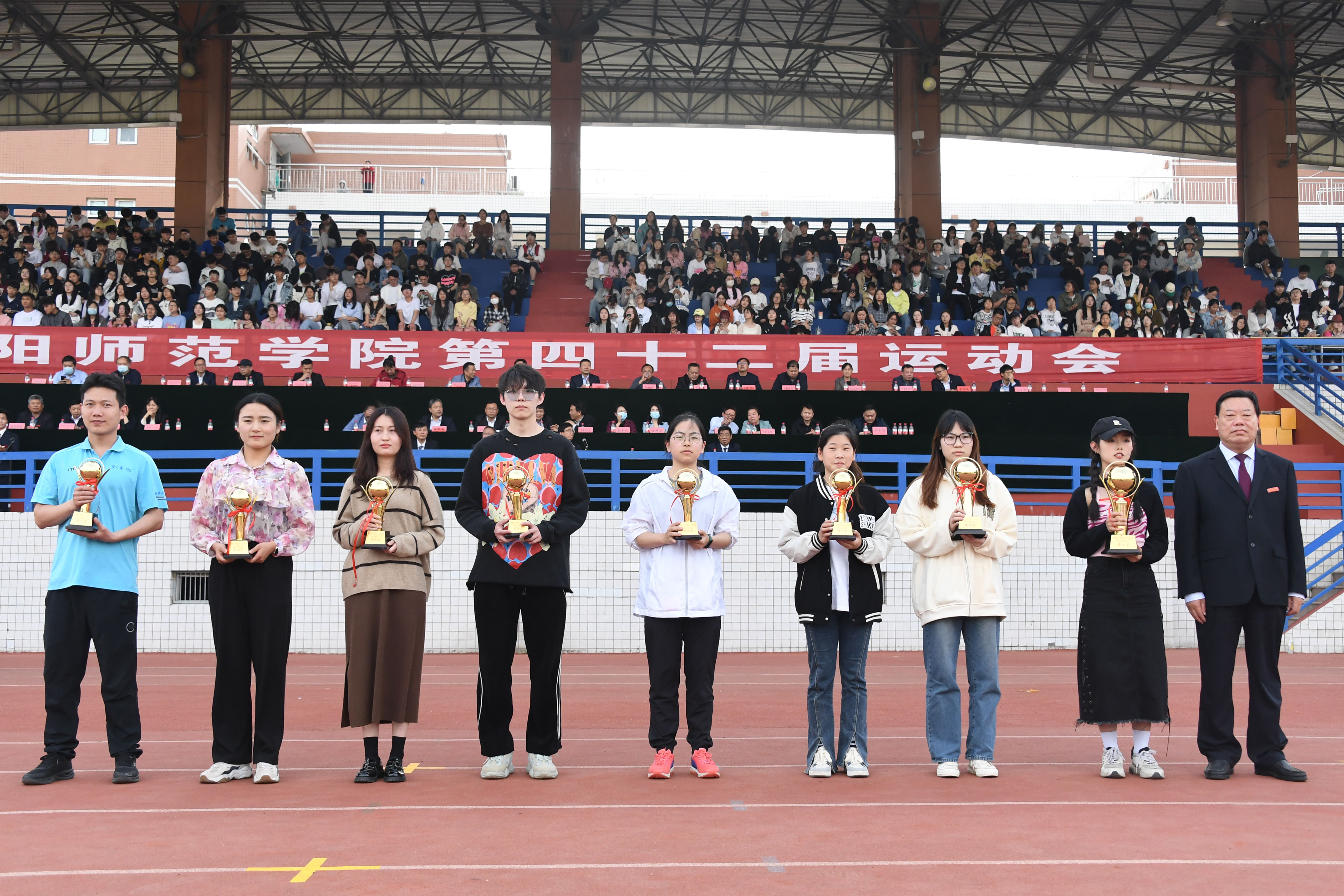 据悉,本届运动会共有2400余名运动员参加了75个比赛项目的紧张角逐。计算机科学与技术学院、美术与艺术设计学院、数学与统计学院、法学院、经济与管理学院、机电工程学院、生命科学与农业工程学院、新闻与传播学院分获甲组男子团体1-8名。教育科学学院、计算机科学与技术学院、新闻与传播学院、土木建筑工程学院、经济与管理学院、生命科学与农业工程学院、音乐学院、珠宝玉雕学院分获甲组女子团体1-8名。新闻与传播学院、计算机科学与技术学院、美术与艺术设计学院、数学与统计学院、教育科学学院、生命科学与农业工程学院、土木建筑工程学院、法学院分获甲组男女团体1-8名。体育学院2021级获得乙组男子团体第一名、女子团体第一名、男女团体第一名。数学与统计学院、计算机科学与技术学院、化学与制药工程学院、水资源与环境工程学院、行政机构分会、党群机构分会、生命科学与农业工程学院、图书馆分会分获教工团体1-8名。体育学院、计算机科学与技术学院、外国语学院、化学与制药工程学院、历史学院、美术与艺术设计学院、地理科学与旅游学院、土木建筑工程学院、机电工程学院、文学院获得精神文明代表队称号。数学与统计学院分会、计算机科学与技术学院分会、体育学院分会、水资源与环境工程学院分会、化学与制药工程学院分会、生命科学与农业工程学院分会、土木建筑工程学院分会、地理科学与旅游学院分会、法学院分会、党群机构分会、行政机构分会、后勤集团分会获得体育道德风尚奖。(编审 时树菁)