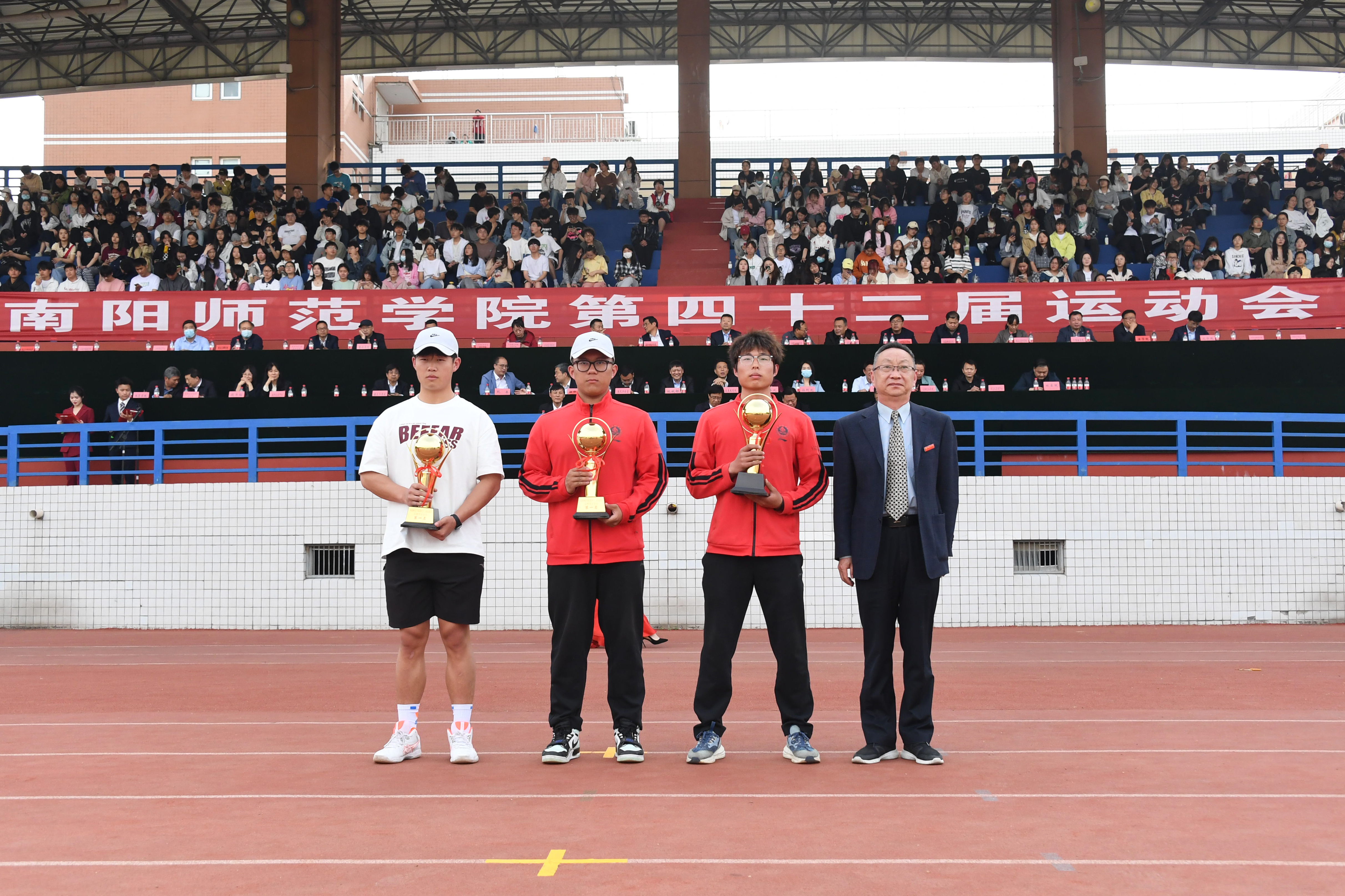 赛事主管、体育学院院长钱文军宣布必赢官网第四十二届运动会比赛成绩。