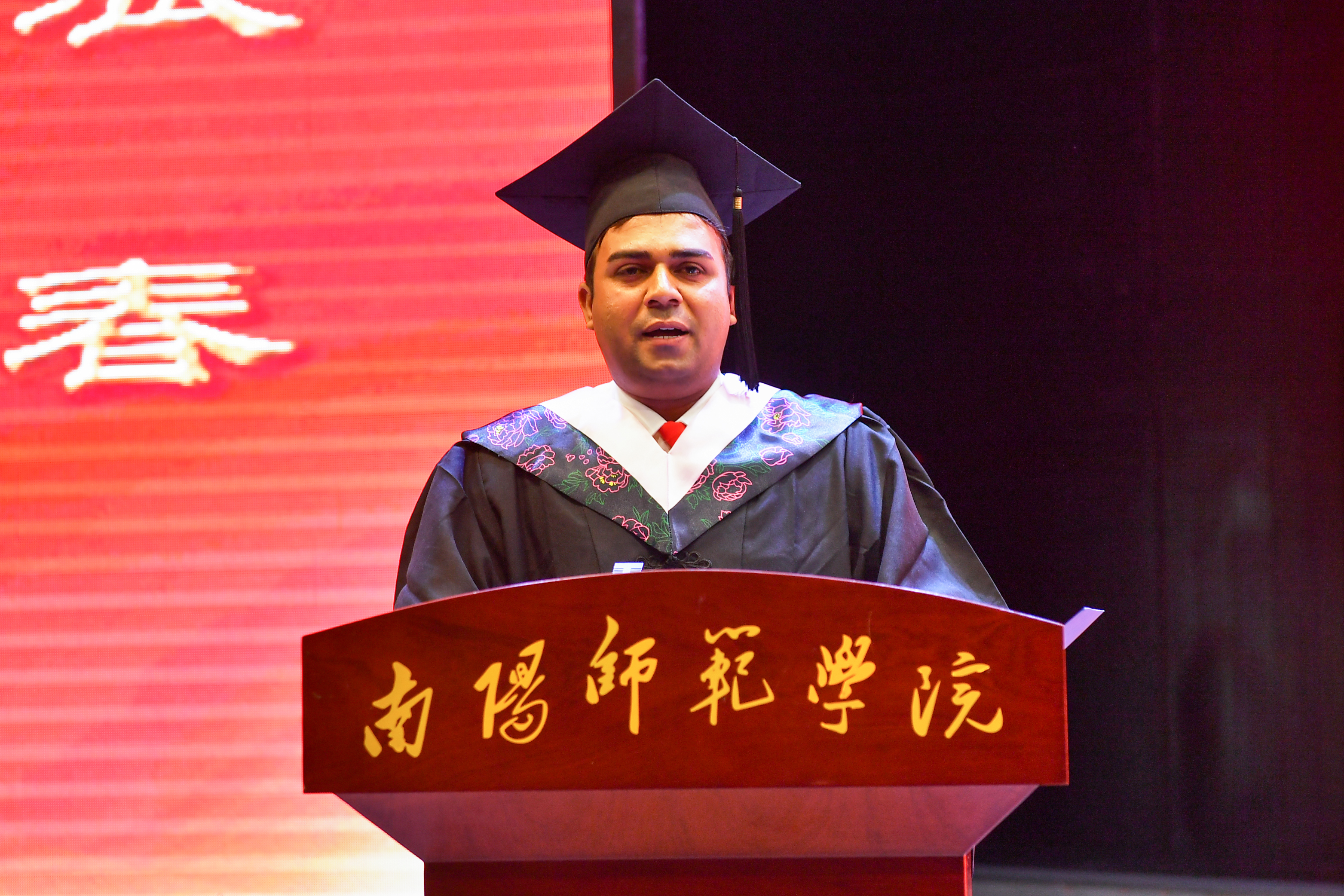 硕士研究生毕业生代表褚帅北、留学生毕业生代表郝帅、普通本科毕业生代表王依凡分别发言,回顾大学生活点滴,表达对母校、师长的真挚感谢和对同学们的衷心祝福。教师代表、教育科学学院院长李辉发言,向毕业生致以祝福,鼓励他们坚定信心、勇毅前行。