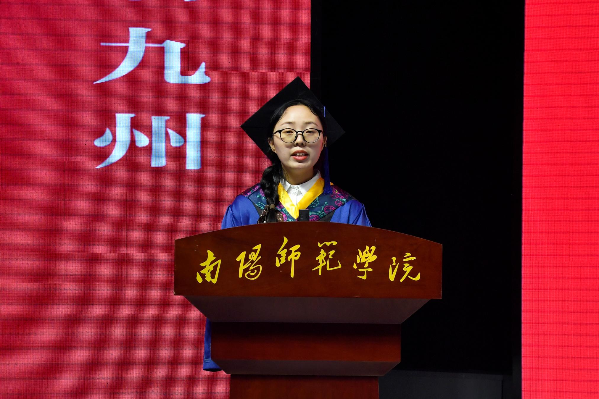 硕士研究生毕业生代表刘欣欣、普通本科毕业生代表倪泽宇分别发言,回顾在校期间的学习生活,表达顺利毕业的喜悦和对母校、老师以及同学的真挚感谢和衷心祝福。教师代表、生命科学学院院长牛秋红向毕业生致以祝福,鼓励毕业生坚守“博学求是、笃行自强”的校训,做卧龙才子,创出彩人生。